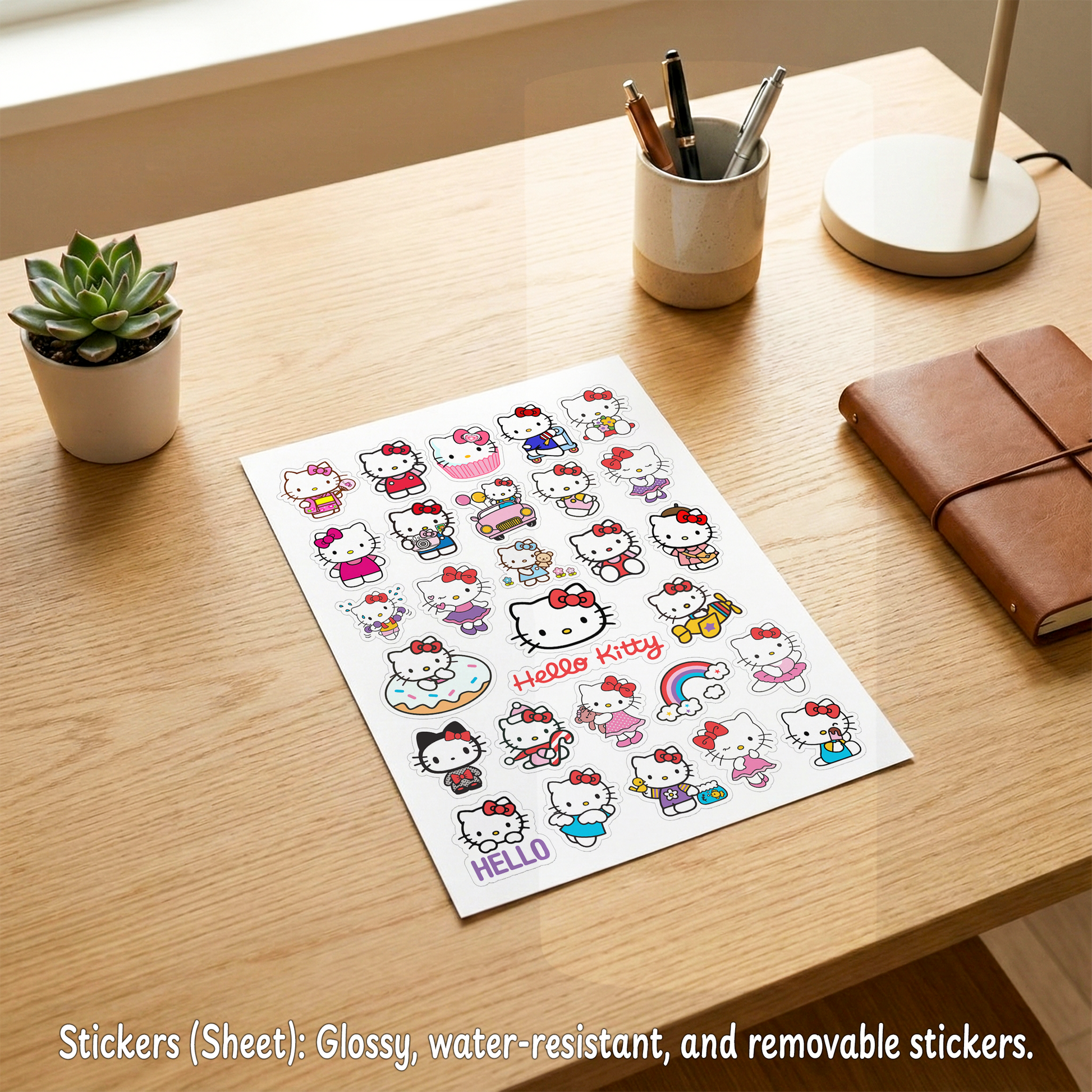 ✨ Stickers (Sheet): Glossy, water-resistant, and removable stickers.