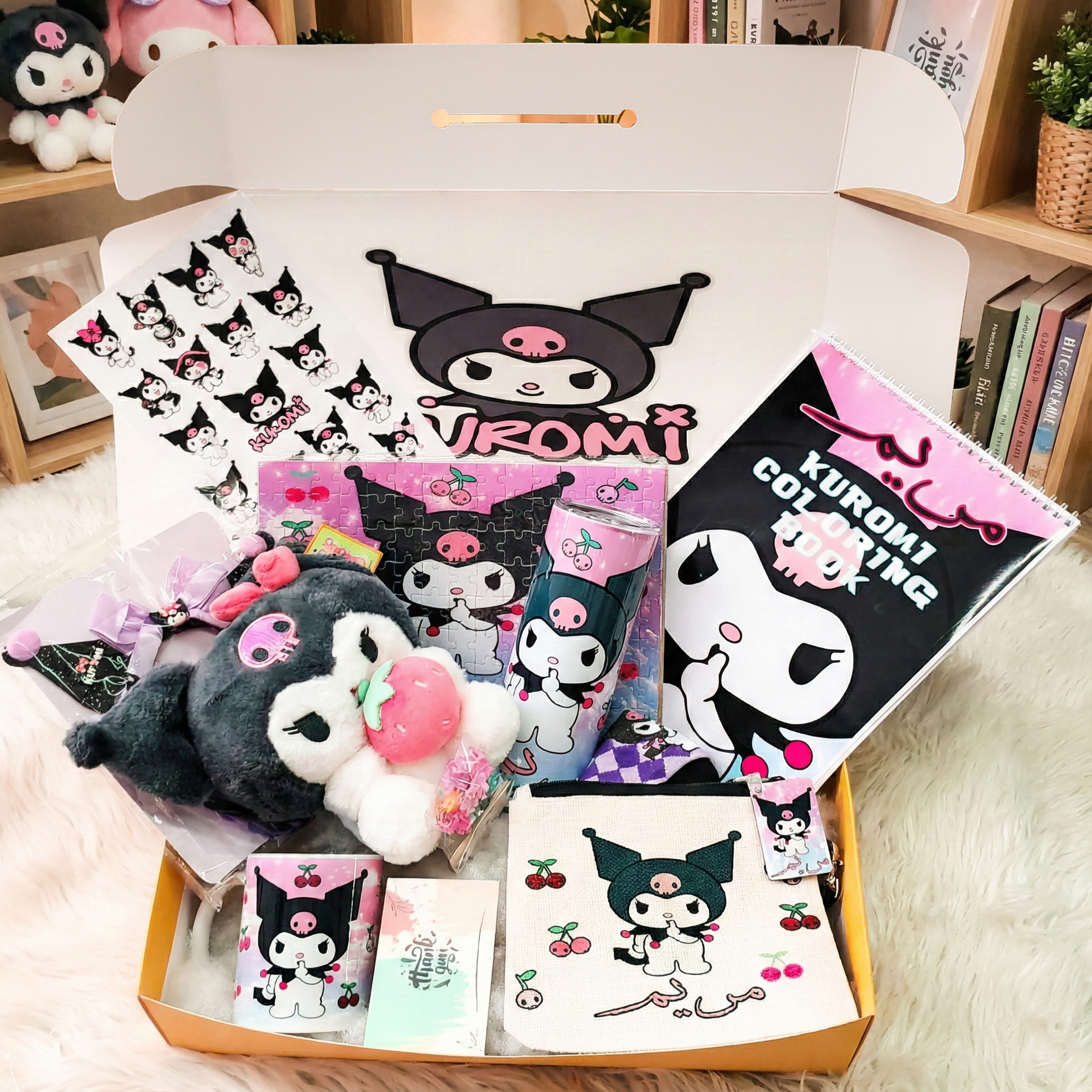 Kuromi Cheeky Chic Box – Custom Name | Includes Plush, Puzzle, Coloring Book & Drinkware Set & More