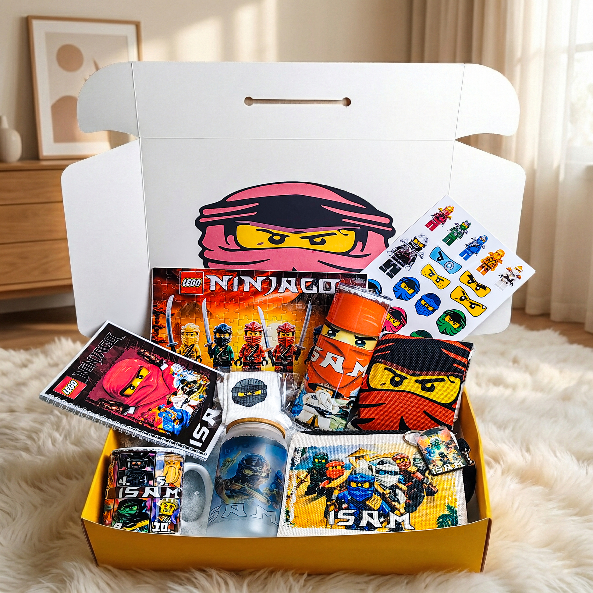 Lego Ninjago Spinjitzu Master Box – Custom Name | Includes Puzzle, Notebook, Drinkware Set & More