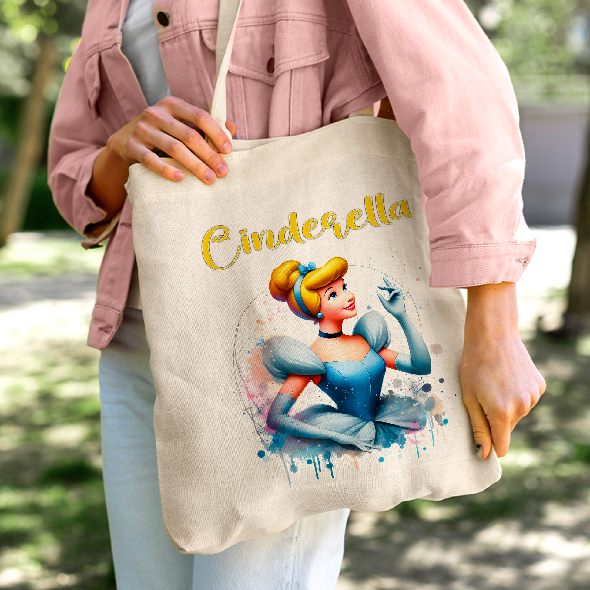 Princess Cinderella Linen Tote Bag - Custom Name (35x45cm) | Eco-Friendly Lightweight Shopping & Everyday Carrier