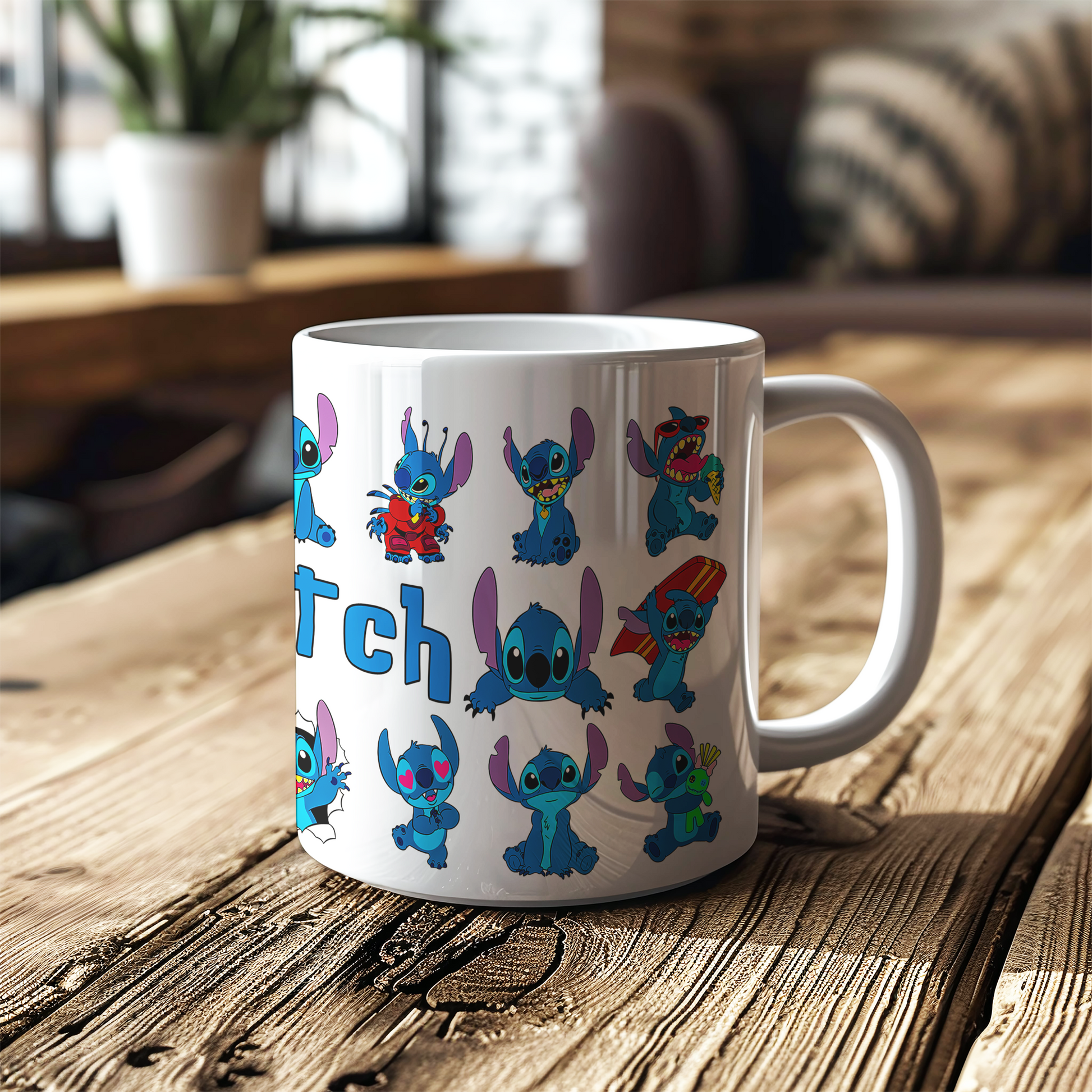 Stitch Character Collage Ceramic Mug – Custom Name | Vibrant & Comfortable