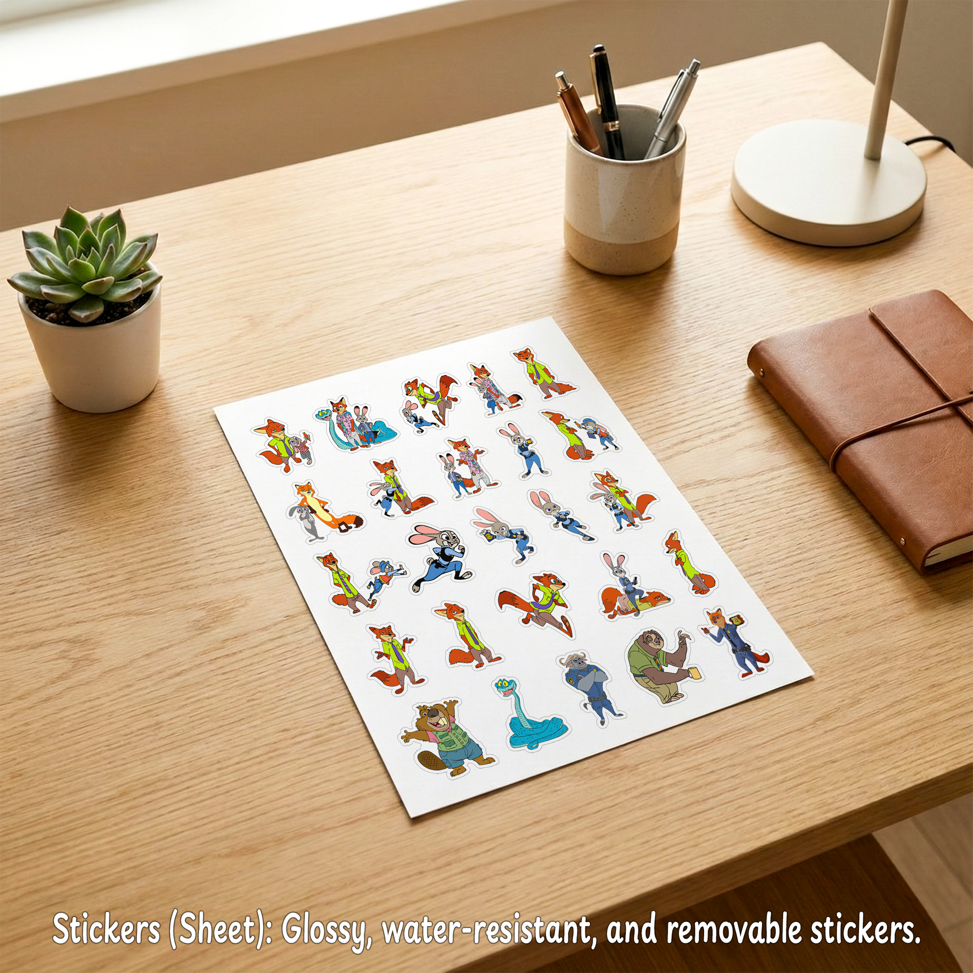 ✨ Stickers (Sheet): Glossy, water-resistant, and removable stickers.